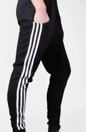 Black best selling track pant with three white stripes
